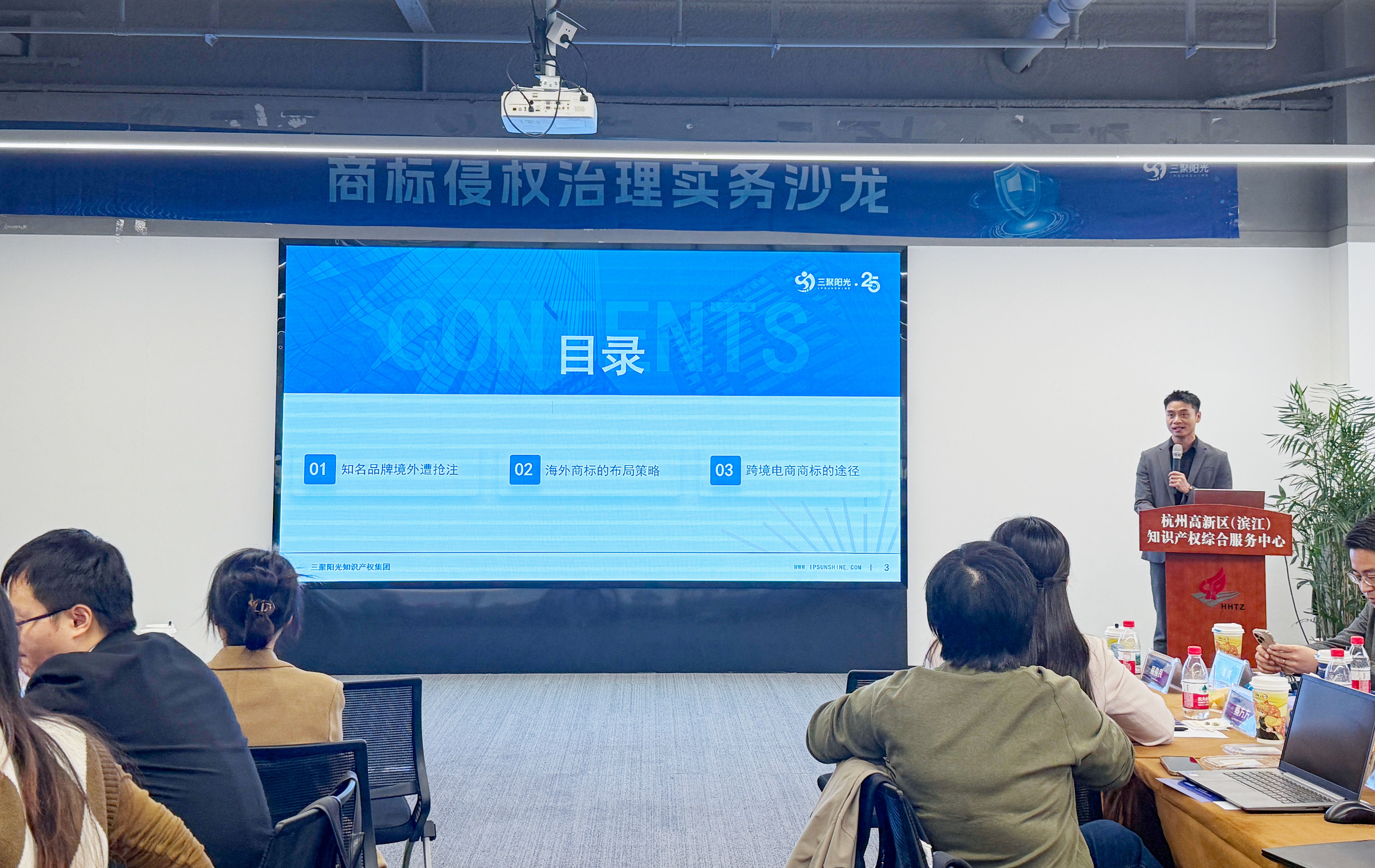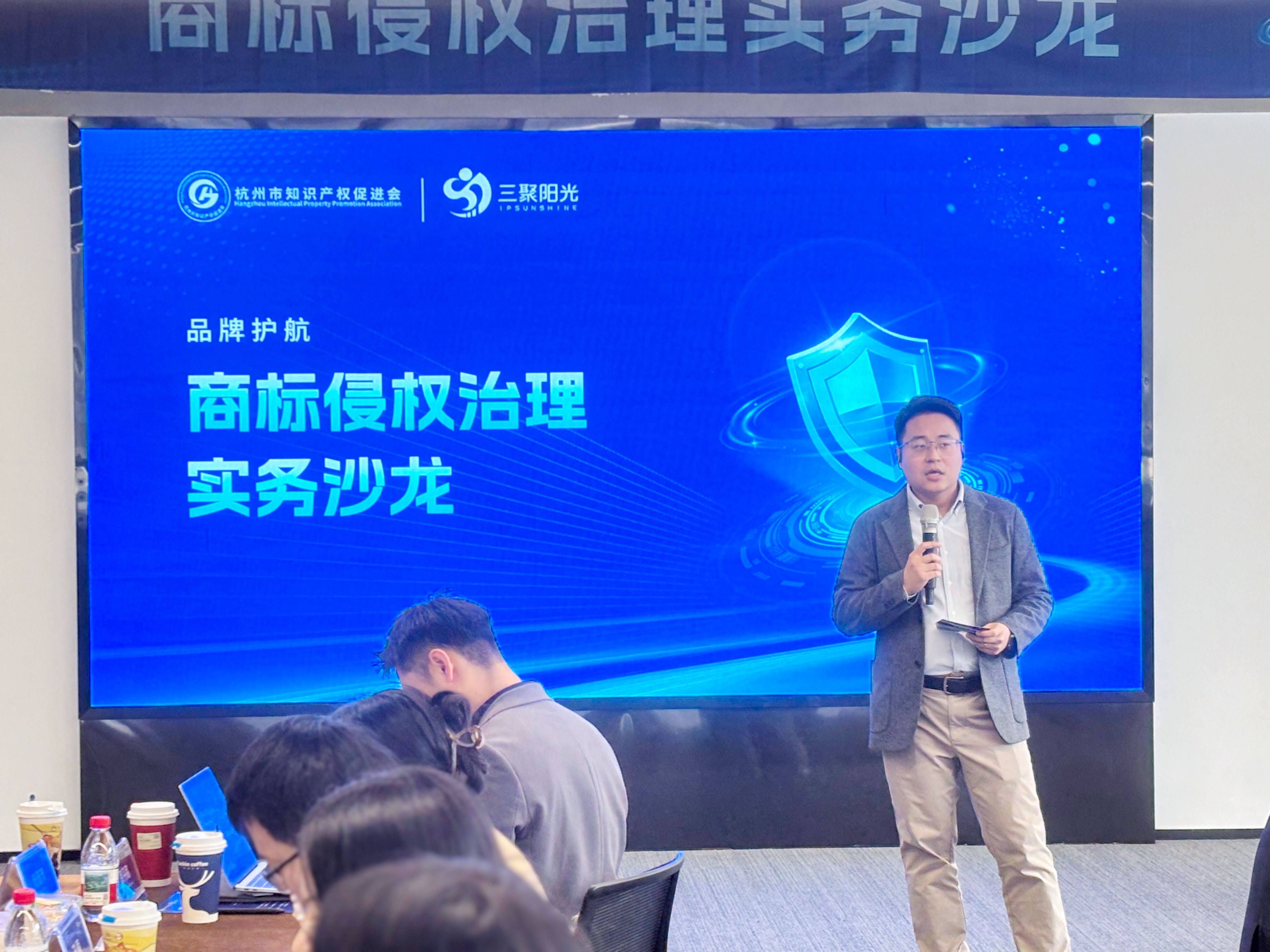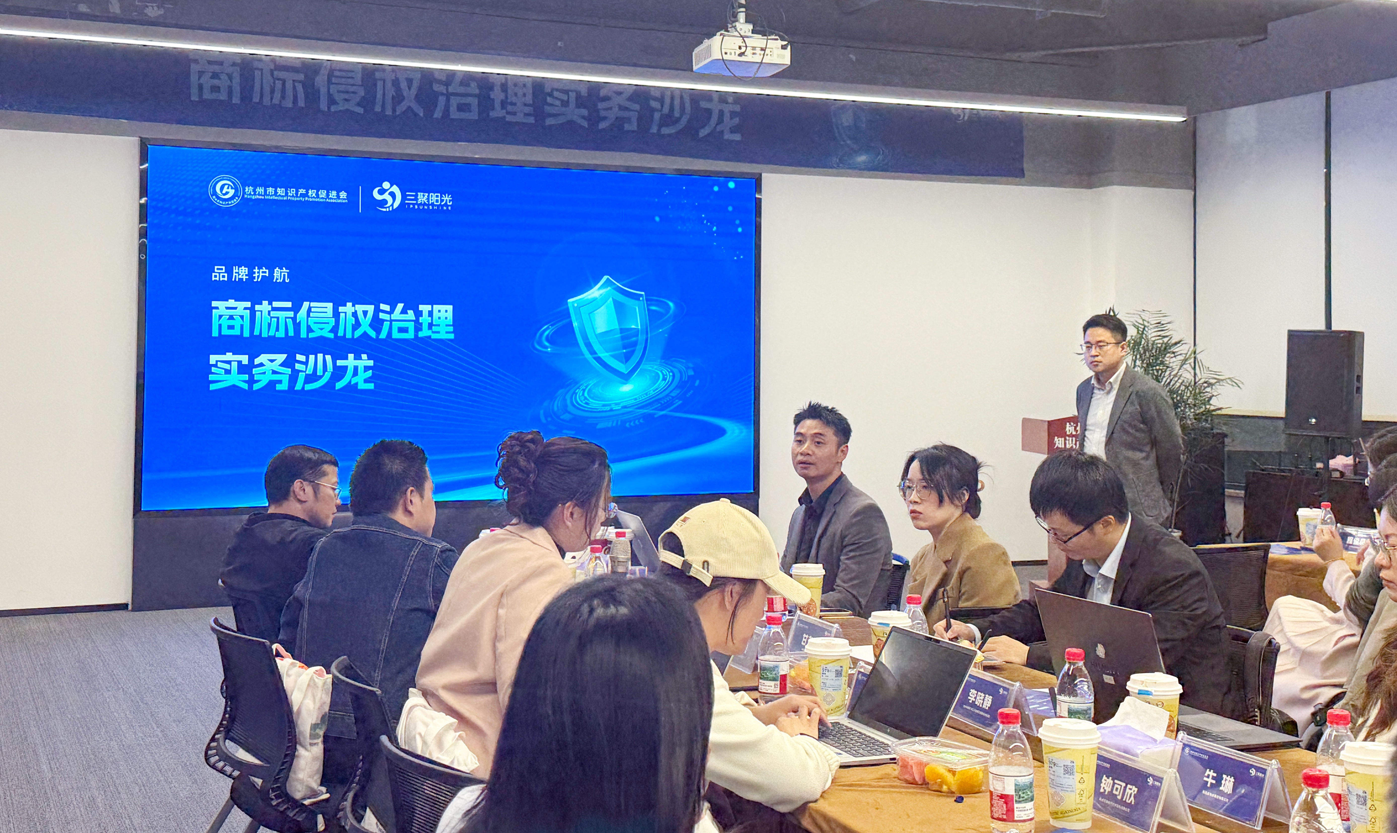 近日,由浙江省知識產(chǎn)權(quán)保護中心、杭州高新區(qū)(濱江)市場監(jiān)督管理局指導(dǎo),杭州市知識產(chǎn)權(quán)促進會、浙江省中小企業(yè)協(xié)會知識產(chǎn)權(quán)專委會主辦,三聚陽光承辦的“品牌護航 商標(biāo)侵權(quán)治理實務(wù)沙龍”在杭州順利舉辦。浙江省知識產(chǎn)權(quán)保護中心服務(wù)發(fā)展部部長張晉茂,杭州市知識產(chǎn)權(quán)促進會秘書長、杭州市知識產(chǎn)權(quán)交易服務(wù)中心總經(jīng)理程俊良受邀出席,三聚陽光浙江區(qū)副總經(jīng)理張鳴主持沙龍。